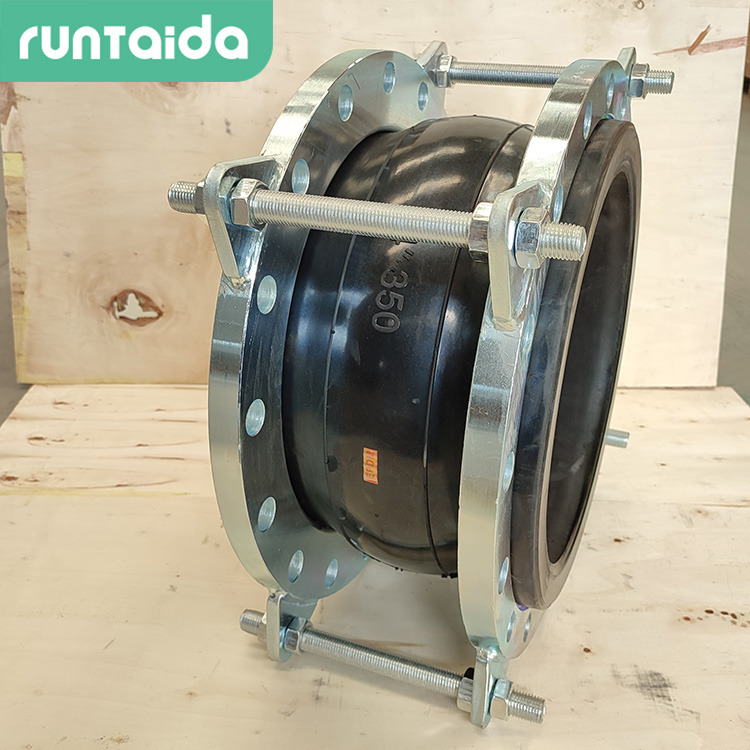 在法蘭橡膠軟連接的兩端法蘭之間加裝雙耳(ěr)式或四耳式限位(wèi)拉杆(通常為高強度螺栓或金屬連杆),形成機械限位結(jié)構。當管道發生軸(zhóu)向伸縮時,橡膠體可自由變形吸收位移,但補償量在設定行程外,拉杆會限製(zhì)進一步拉伸,避免接頭被拔脫。